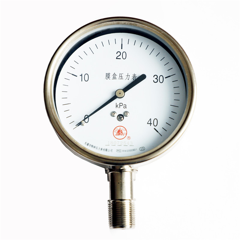 膜盒壓力表采用波紋膜盒作為測量微小壓力的敏感元件。膜盒壓力表適用于測量對銅和銅合金不起腐蝕作用,無爆炸危險的微壓和負壓。表盤上面有調零裝置,可以方便調整零位。膜盒壓力表廣泛用于鍋爐通風和氣體管道等設備上,膜盒壓力表可以就地安裝并現場指示壓力。