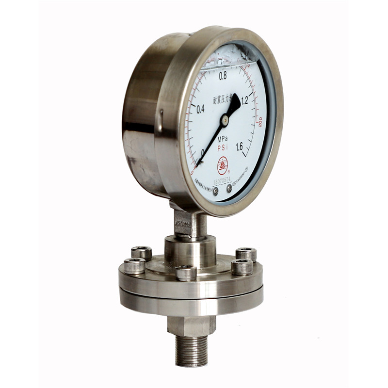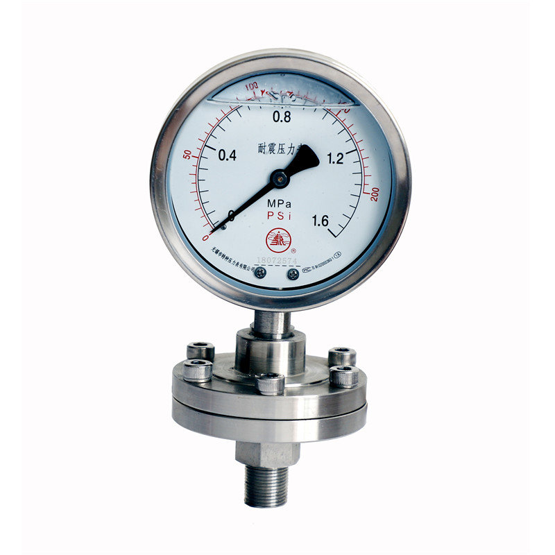 螺紋連接隔膜壓力表采用間接測量結構,用隔離膜片將被測介質與敏感元件隔開,與設備采用螺紋連接,適用于測量強腐蝕、高溫、高粘度、易結晶、易凝固、有固體浮游物的介質壓力以及必須避免測量介質直接進入通用型壓力儀表和防止沉淀物積聚且要易清洗的場合。本公司可根據用戶需要,設計、制造特殊用途的螺紋連接隔膜壓力表產品,歡迎來人來電、來函洽談!