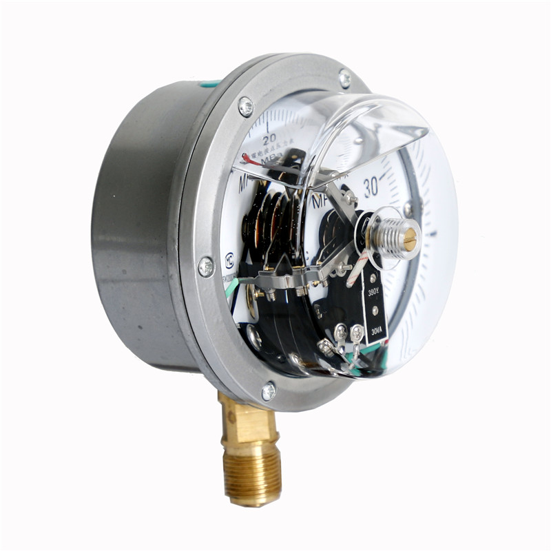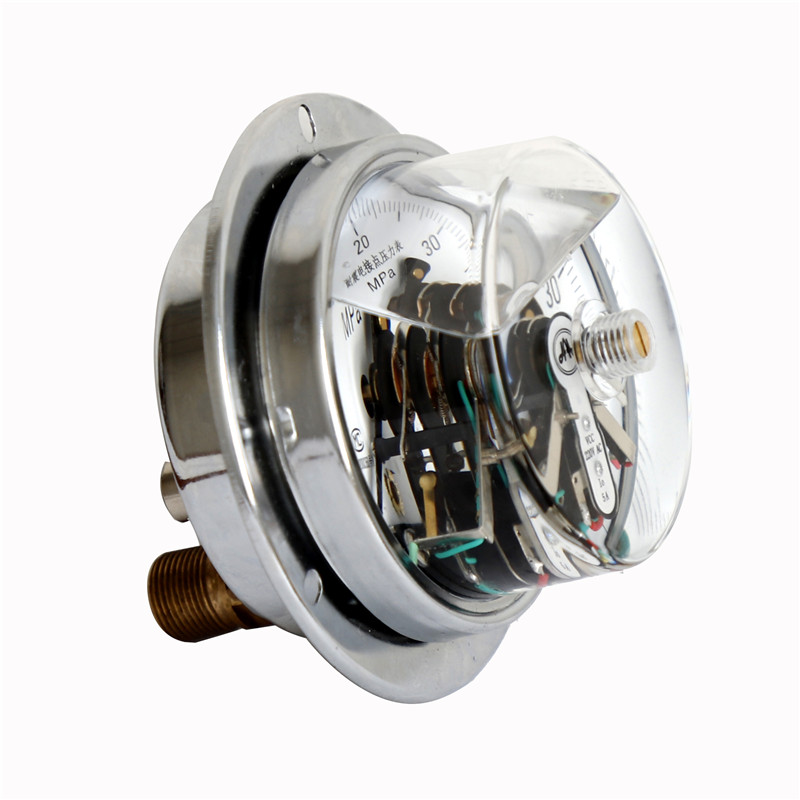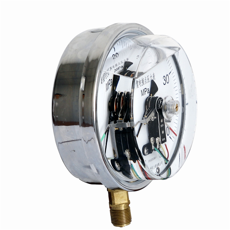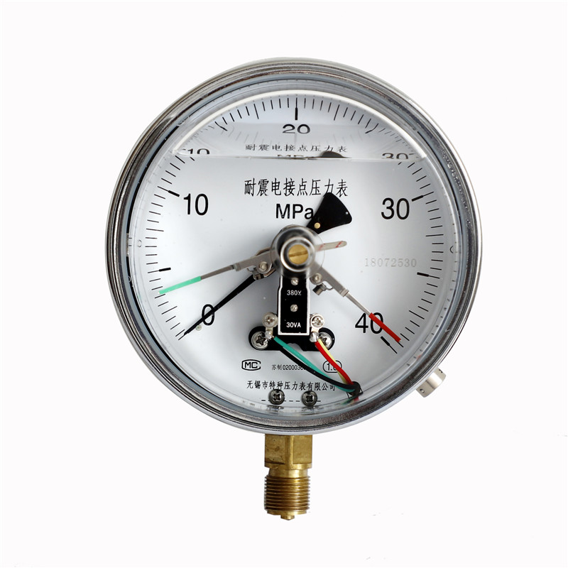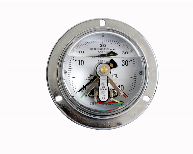 耐震電接點壓力真空表具有抗介質脈動和沖擊載荷,耐環境振動等優異特性,適用測量對銅和銅合金無腐蝕性的氣體,液體或蒸汽等壓力或真空度,一只表可同時測量壓力和真空。儀表設上、下限二位開關型接點裝置(可選雙上限或雙下限接點裝置),在壓力達到設定值時發出信號或通斷控制電路,供作業系統自動控制或發訊用。其抗振結構可有效抑制指針的抖動、沖擊,保護接點,使儀表指示清晰,電信號切換可靠,工作穩定。廣泛應用于機械、化工、石油、冶金、電力等工業生產過程壓力測量和控制。
