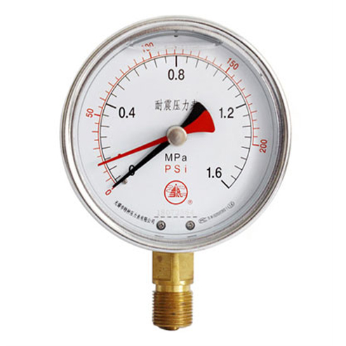 記憶壓力表的壓力指針在隨著被測(cè)介質(zhì)壓力增大而升高的同時(shí)也帶動(dòng)記憶表針的上升,當(dāng)隨著被測(cè)介質(zhì)壓力減少壓力指針下降時(shí),記憶表針仍停留在原位。