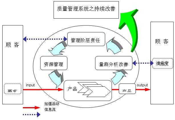 本模式要求定期審查本公司質量管理系統(tǒng),必要時得修訂質量政策與目標。質量管理系統(tǒng)之運作模式如圖所示。