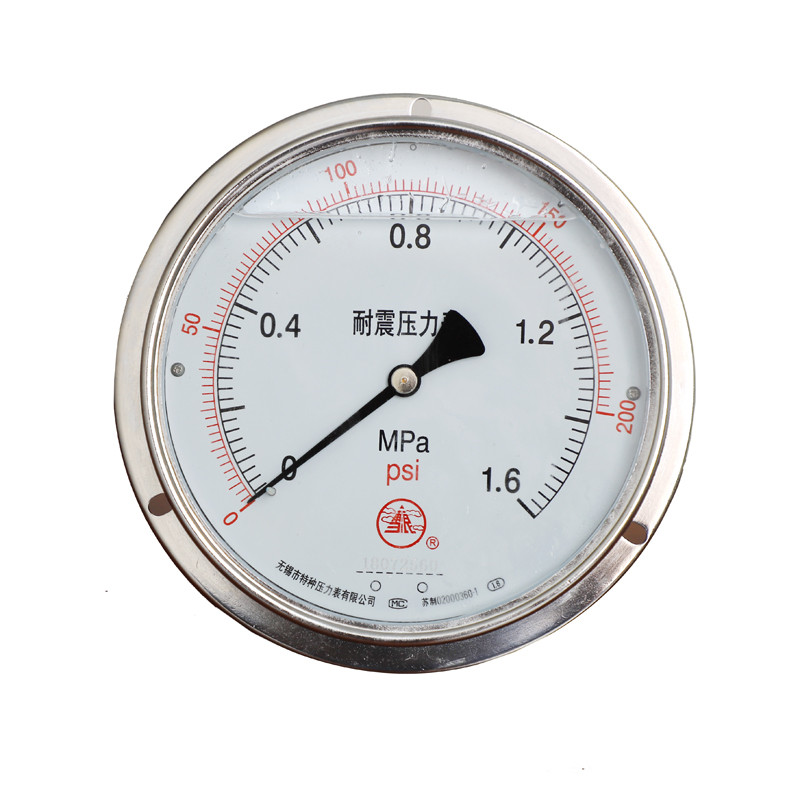 軸向帶邊耐震壓力表是在普通壓力表的基礎上,表殼為全密閉型結構,內部填充阻尼液(一般為甘油或者硅油)并加裝緩沖機構,減輕環境劇烈振動及介質脈沖對儀表示值的影響,軸向帶邊耐震壓力表利用自帶的圓形或者方型安裝盤固定在設備面板上,便于操作工人隨時觀察壓力變化。耐震型壓力表指示穩定清晰。廣泛應用于液壓機械、石油、化工、冶金、礦山機械、電力設備等部門,測量對銅和銅合金無腐蝕性介質的壓力。本公司可根據用戶需要,設計、制造特殊用途的軸向帶邊耐震壓力表產品,歡迎來人來電、來函洽談!